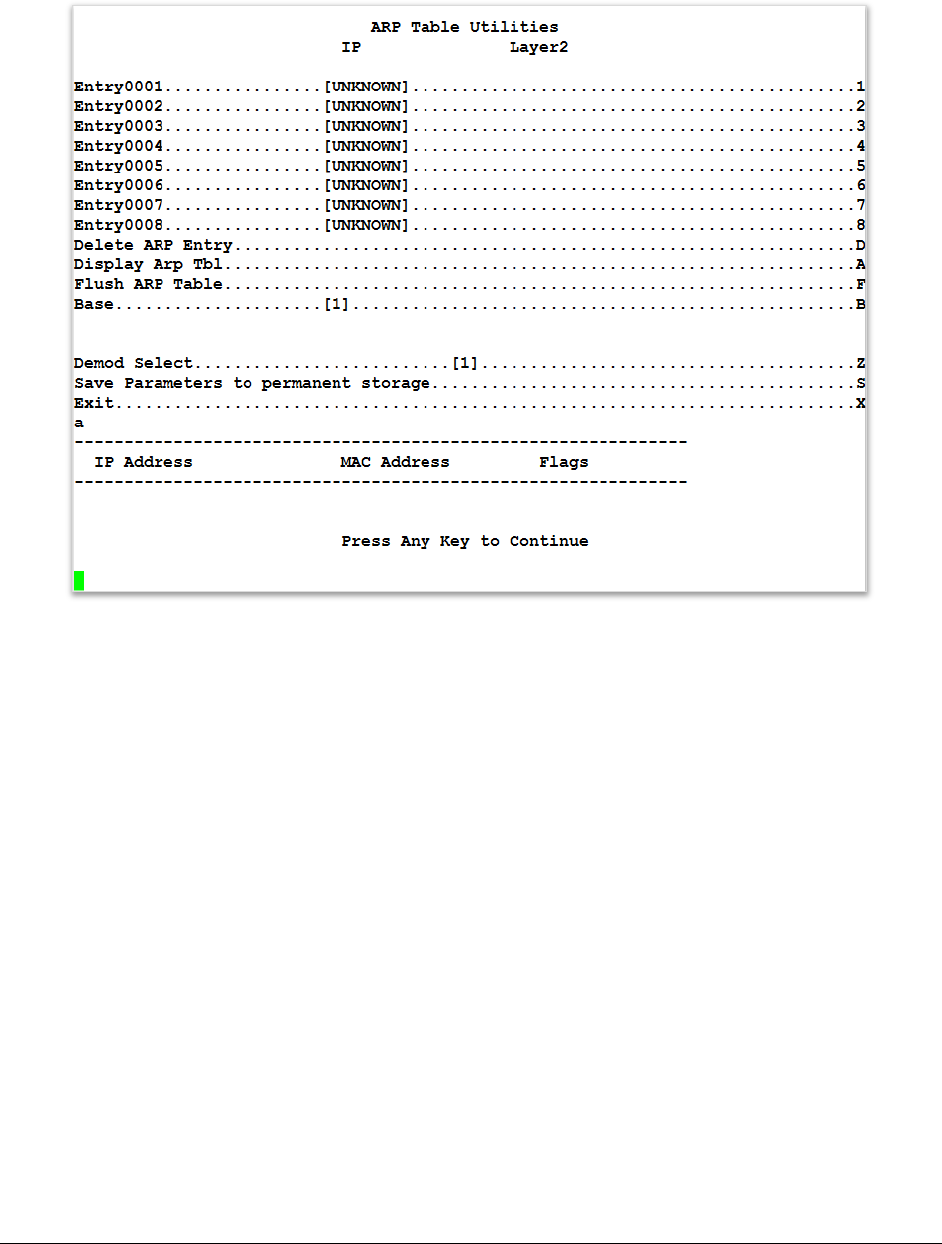 • Press the Enter key to see the next 10 entries, or press the ESC key to return to ARP Table