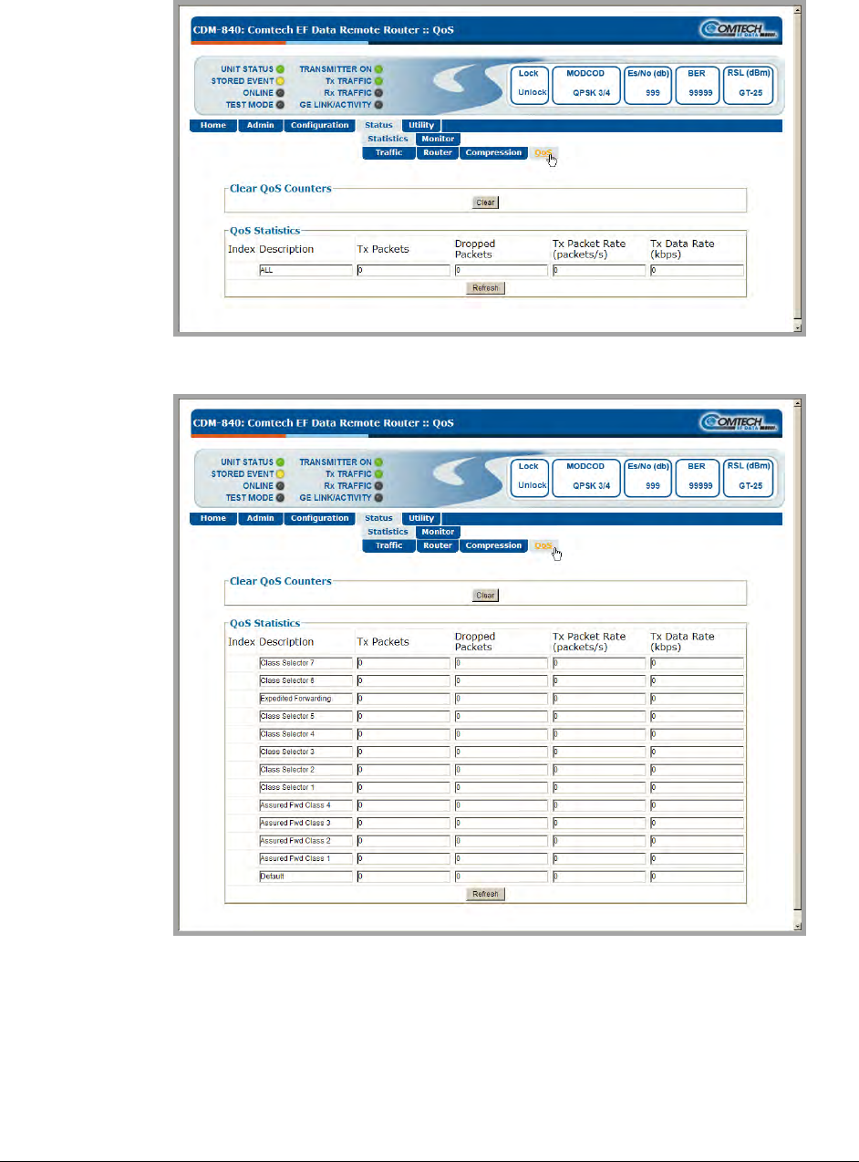 Figure 5-21. Status | Statistics | QoS pages