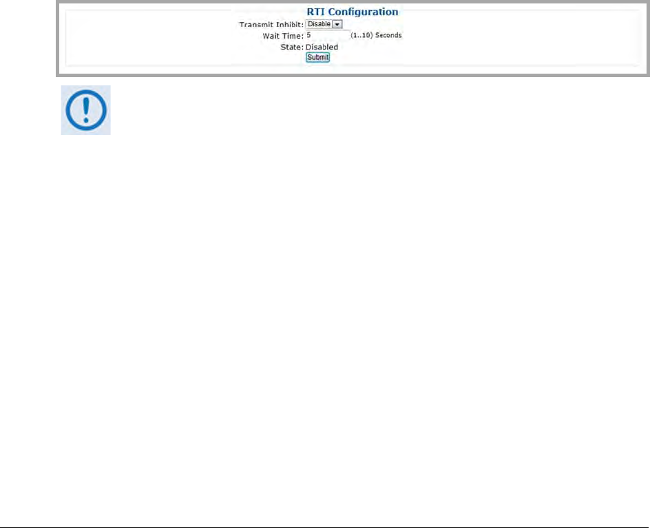 • Transmit Inhibit – Use the drop-down list to Disable or Enable RTI operation.