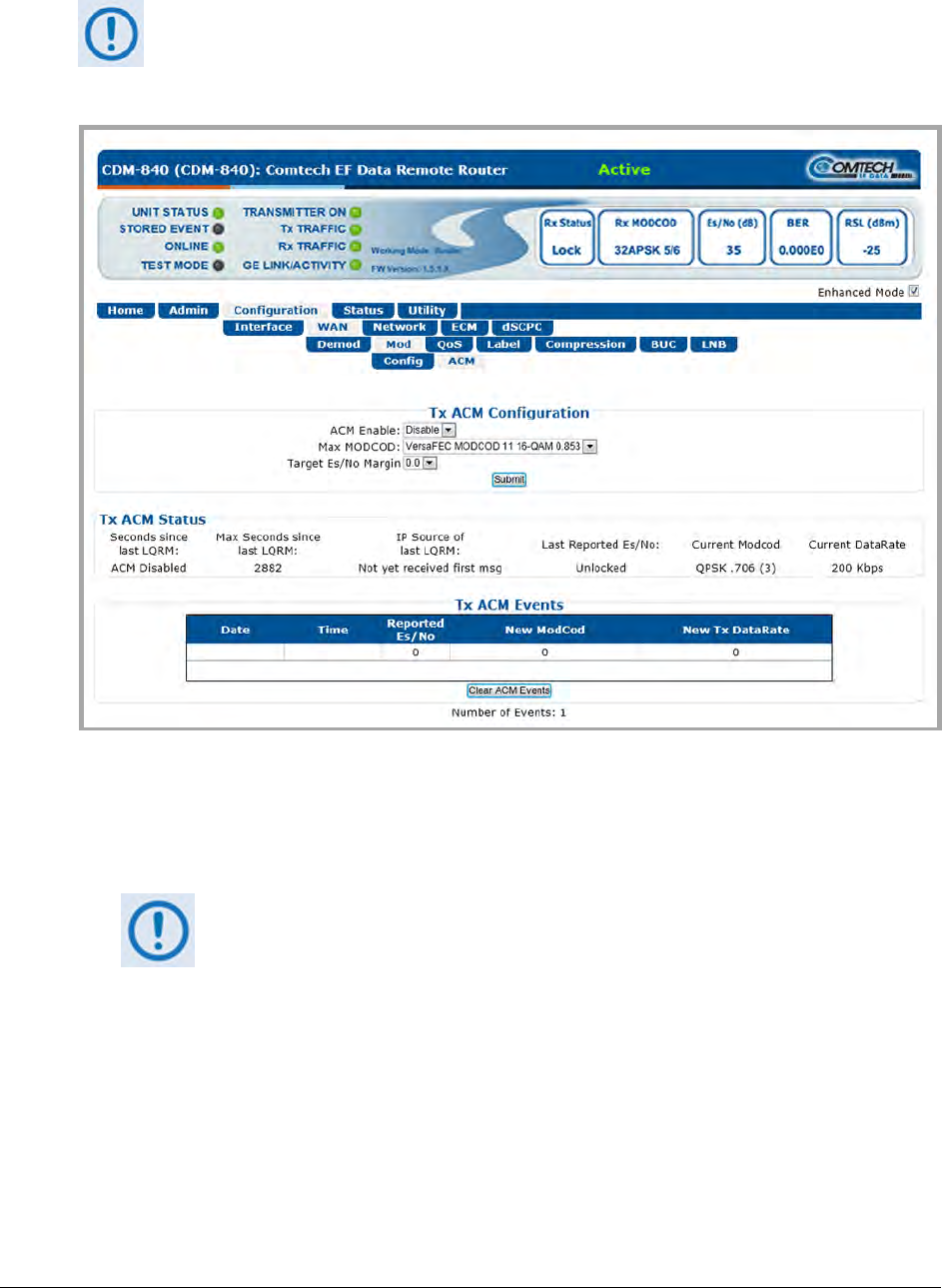 • ACM Enable – Use the drop-down list to Disable or Enable Tx ACM operation.