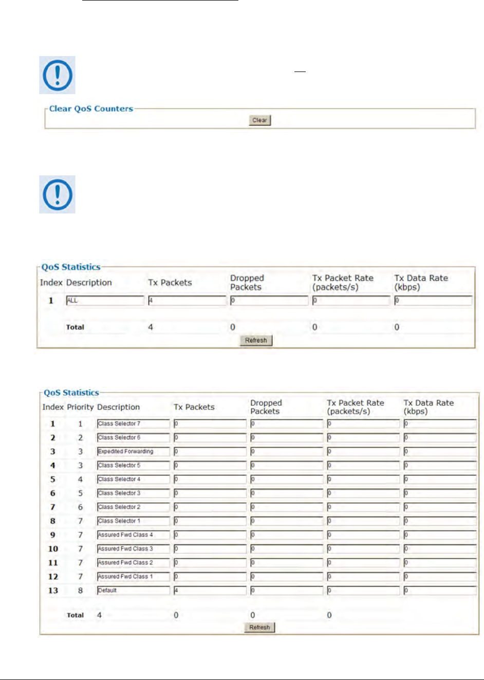 The appearance of the QoS Statistics section differs depending on the active page