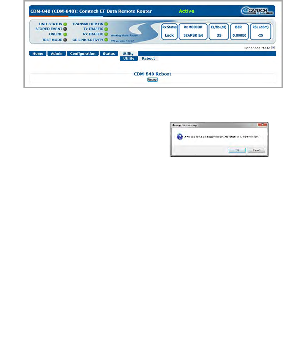 Use this page to perform a soft reboot of the CDM-840. Note that the function of this page is