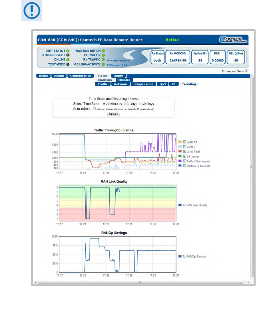 the CDM-840 Web Server (HTTP) Interface Status | Statistics | Trending page (Figure G-6).