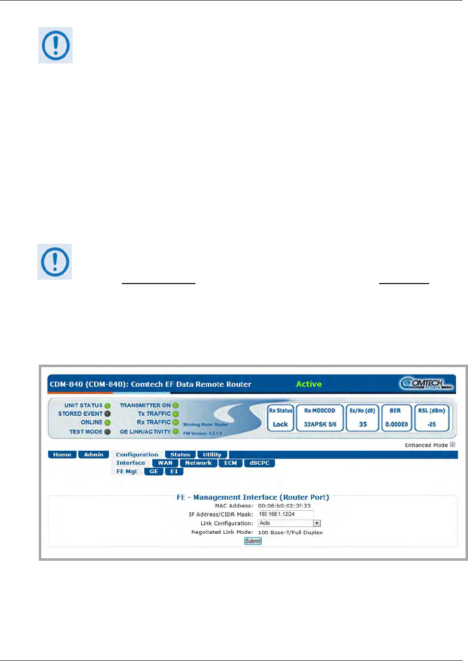 Figure 6-9. Configuration | Interface | FE-Mgt Page